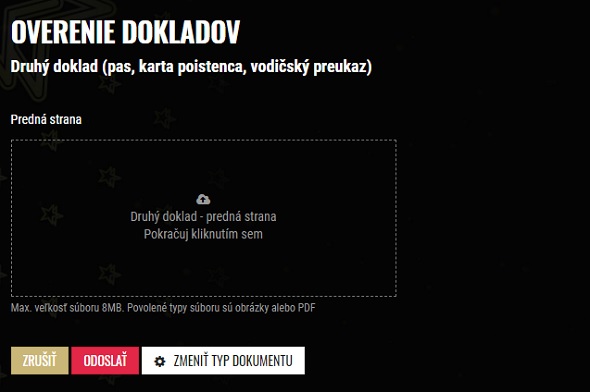Overenie identity - nahratie dokladov v DoubleStar casino