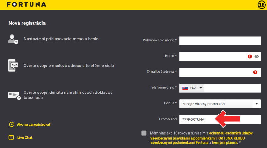 Kliknite TU a založte si účet vo FORTUNA kasíne