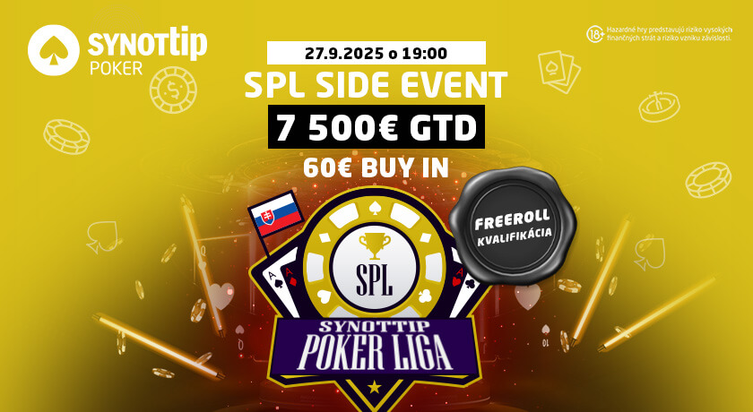 Zahrajte si v SynotTip pokerovej herni niektorý SPL turnaj a môžete vyhrať stovky až tisíce eur.